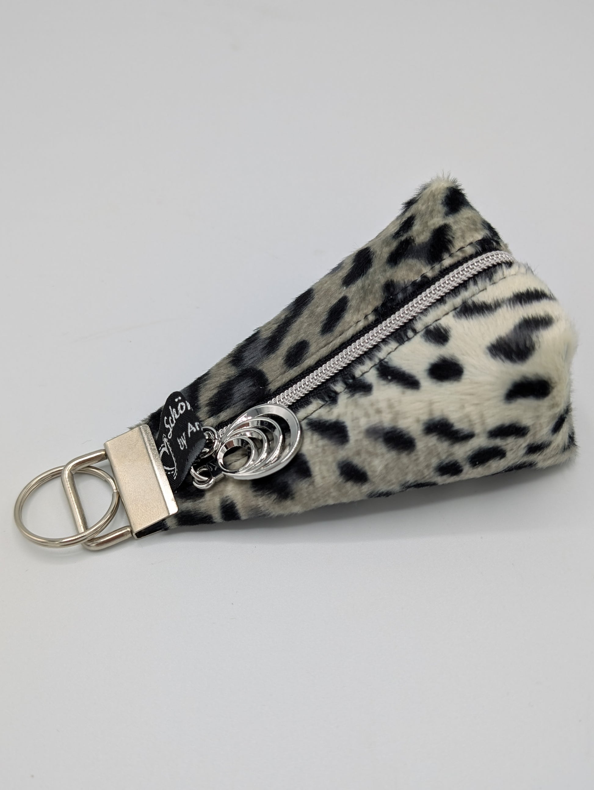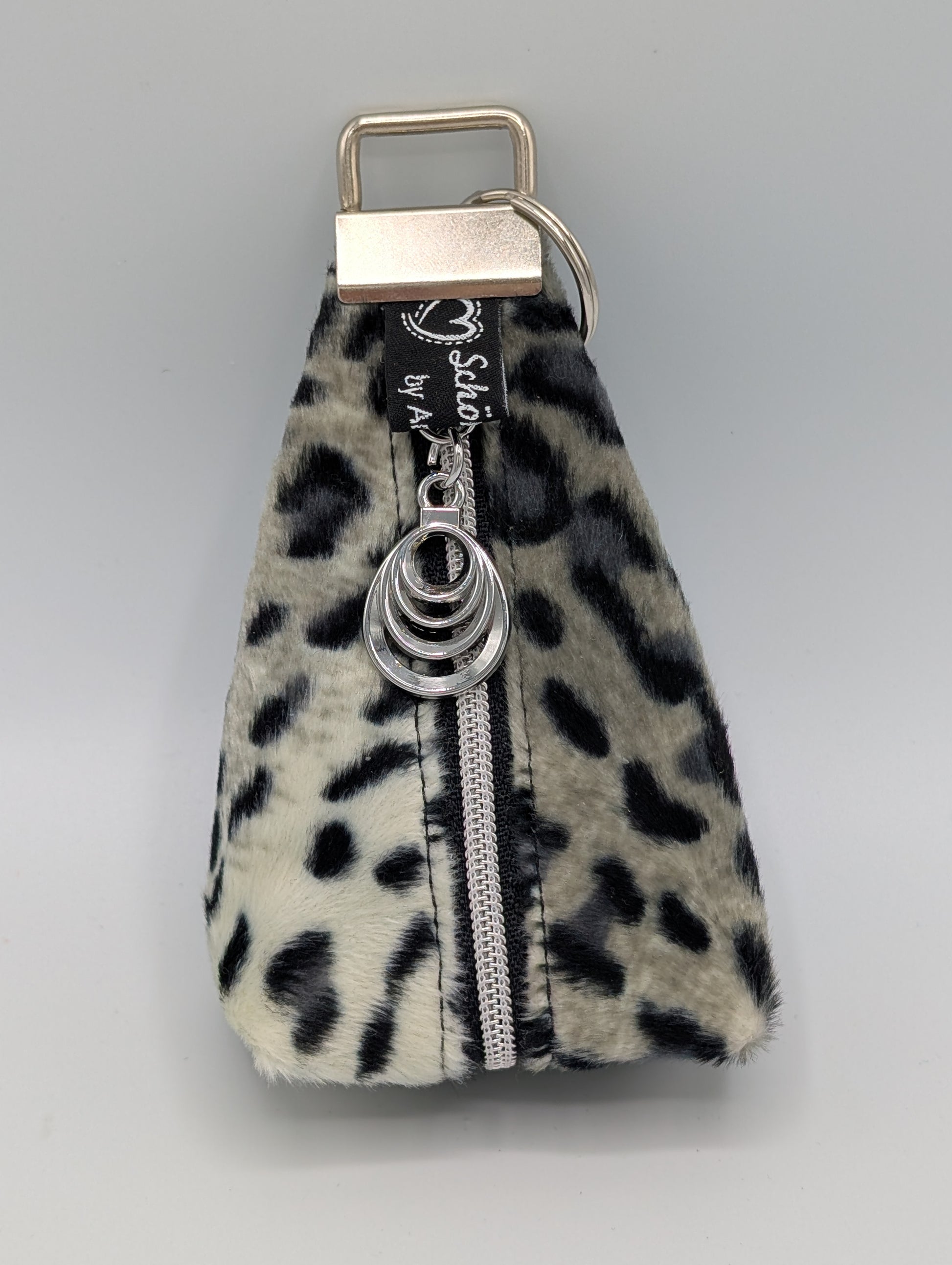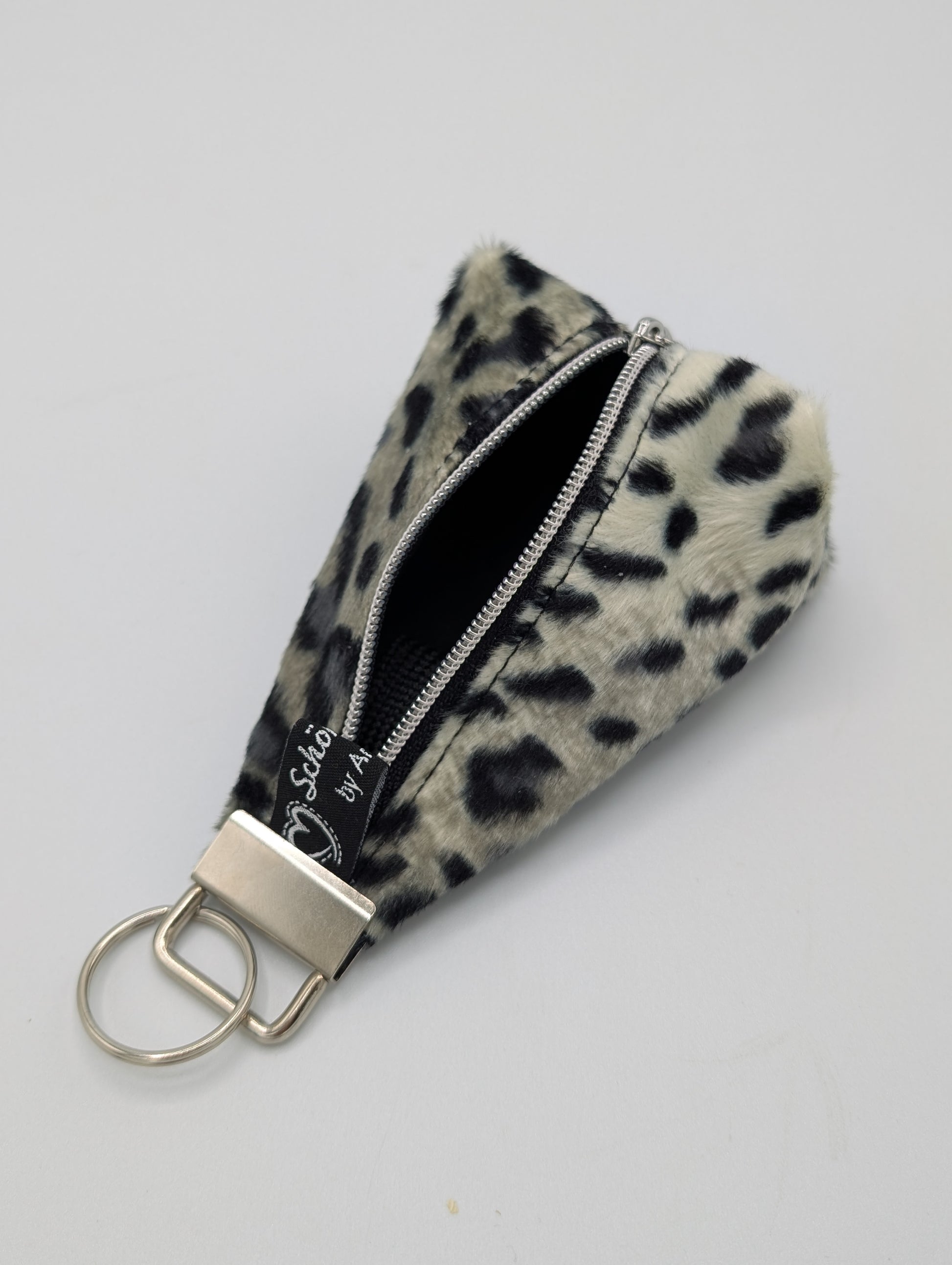 Das Mäppchen ist durch das Fellimitat in den Farben Schwarz,Grau, Beige ein echter Hingucker. Der ausgefallene Schieber in Tropfenform und der Reißverschluss mit silberner Laufschiene macht das Täschchen nochmal etwas edler.